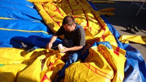 Nicht nur LKW-Planen und Verdecke werden von MAISE fachgerecht repariert. Hier ging einer Hüpfburg die Luft aus. MAISE ist zur Stelle um die Reparatur vorzunehmen.