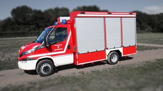Auf der Basis eines IVECO Daily mit einem zulässigen Gesamtgewicht von 7,2 t wurde nach kundenspezifischen Anforderungen ein Einsatzfahrzeug aufgebaut das den harten Anforderungen eines Feuerwehreinsatzes zuverlässig standhält. Durch die Verwendung von Teleskopschienen und Schubfächern kann das Fahrzeug optimal beladen und im Einssatz genutzt werden. Dazu wurde das Fahrzeug mit einer modernen Lichtanlage in LED Ausführung sowie einem pneumatischen Lichtmast mit zwei LED-Scheinwerfern ausgestattet.